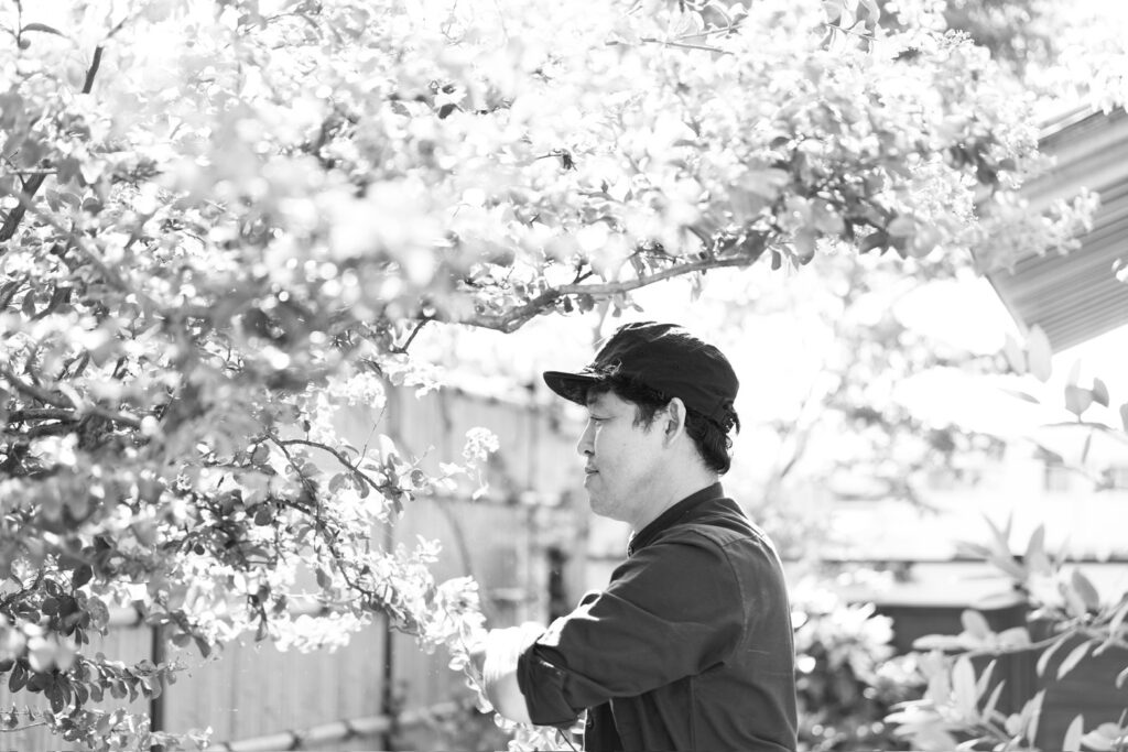 庭師 森口和也による空間ディスプレイと植物の販売。